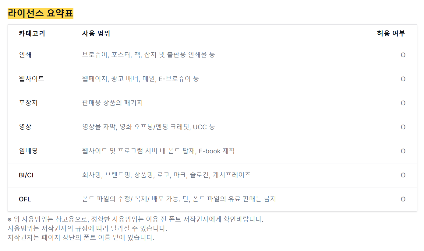 한글 글리프는 본고딕을 기반으로 합니다.